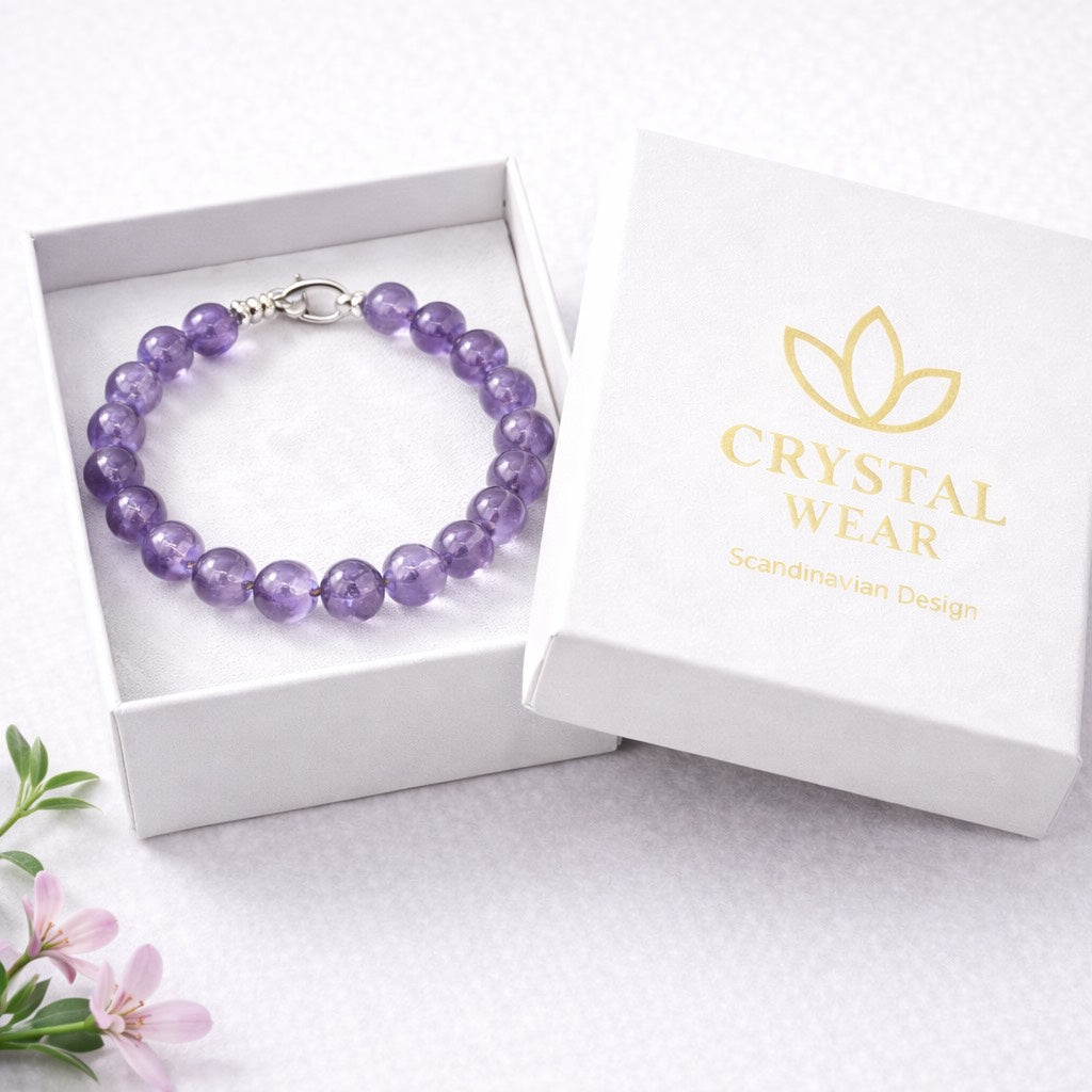 Ett armband som förenar nordiskt hantverk med naturens kraft. Varje pärla av naturlig ametist väljs ut med omsorg av guldsmeden Daniel Fernstedt i Sverige, som skapar ditt armband för hand först efter att du beställt. Varje steg i skapandeprocessen genomsyras av rätt intention – från urval av sten till det ögonblick ditt unika armband tar form. Det eleganta 925 silver låset avslutar designen med en tidlös finish som passar alla.